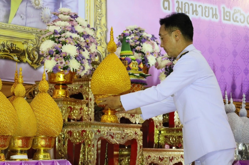 ร่วมพิธีถวายเครื่องราชสักการะ วางพานพุ่มและพิธีจุดเทียนชัยถวายพระพรชัยมงคล เนื่องในวันเฉลิมพระชนมพรรษา สมเด็จพระนางเจ้าฯ พระบรมราชินี 3 มิถุนายน 2568