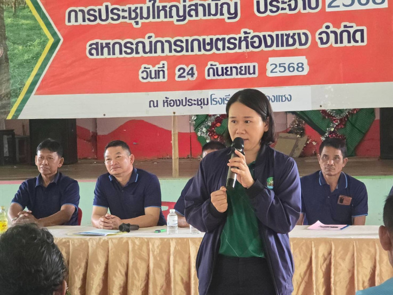 วันที่ 24 สิงหาคม 2568 นางสาวขนิษฐา ทูลธรรม ตำแหน่ง ผู้อำนวยการกลุ่มส่งเสริมสหกรณ์ 4 นายพรศักดิ์ ลาดเหลา ตำแหน่ง เจ้าพนักงานส่งเสริมสหกรณ์อาวุโส พร้อมด้วยบุคลากรกลุ่มส่งเสริมสหกรณ์ 4 สำนักงานสหกรณ์จังหวัดยโสธร เข้าร่วมประชุมใหญ่สามัญประจำปี สหกรณ์การเกษตรห้องแซง จำกัด สำหรับปีบัญชีสิ้นสุด 30 เมษายน 2568 ณ หอประชุมโรงเรียนห้องแซงวิทยาคม ตำบลห้องแซง อำเภอเลิงนกทา จังหวัดยโสธร สหกรณ์การเกษตรห้องแซง จำกัด มีสมาชิก ณ วันสิ้นปีบัญชี จำนวน 289 คน มีสมาชิกเข้าร่วมประชุมใหญ่ จำนวน 110 คน สหกรณ์ดำเนินธุรกิจ 4 ด้าน ปริมาณธุรกิจรวมทั้งสิ้น จำนวน 42,639,263.32 บาท ซึ่งแยกเป็นธุรกิจรวบรวมผลผลิต จำนวน 41,167,628.32 บาท ธุรกิจให้บริการและส่งเสริมการเกษตร จำนวน 8,000.00 บาท ธุรกิจแปรรูปผลิตผลการเกษตรและการผลิตสินค้า จำนวน 177,920.00 บาท และธุรกิจจัดหาสินค้ามาจำหน่าย จำนวน 1,285,715.00 บาท สหกรณ์มีมติไม่ขัดต่อกฏหมาย ข้อบังคับและระเบียบของสหกรณ์