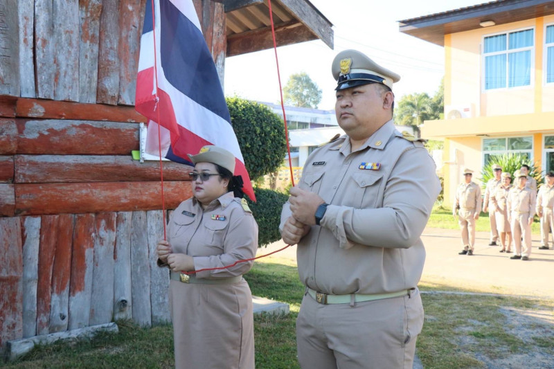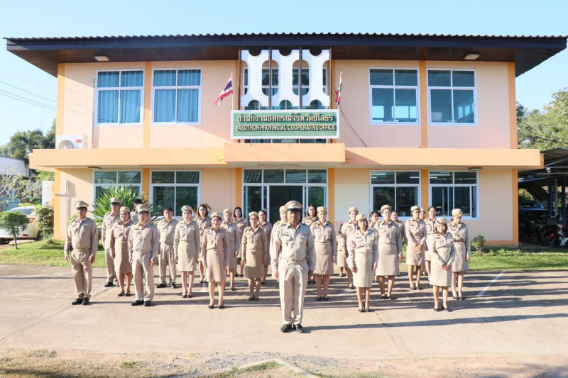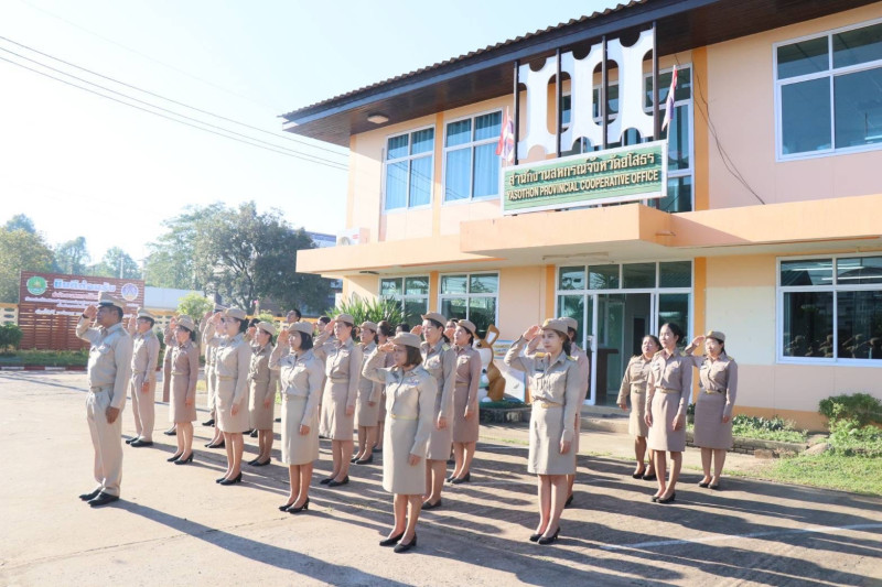 นายภาณุพงศ์ แสงคำ สหกรณ์จังหวัดยโสธร พร้อมด้วยบุคลากรสำนักงานสหกรณ์จังหวัดยโสธร ร่วมกิจกรรมเข้าแถวเคารพธงชาติ ร้องเพลงชาติ เพื่อแสดงออกถึงความจงรักภักดีต่อสถาบันชาติ ศาสนา และพระมหากษัตริย์ไทย ณ บริเวณหน้าเสาธง สำนักงานสหกรณ์จังหวัดยโสธร อำเภอเมืองยโสธร จังหวัดยโสธร
