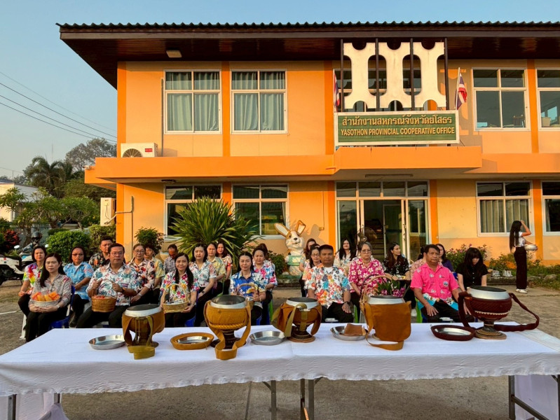 สำนักงานสหกรณ์จังหวัดยโสธร จัดพิธีทำบุญสักการะสิ่งศักดิ์สิทธิ์และทำบุญสำนักงานเพื่อเสริมสิริมงคลแก่บุคลากร