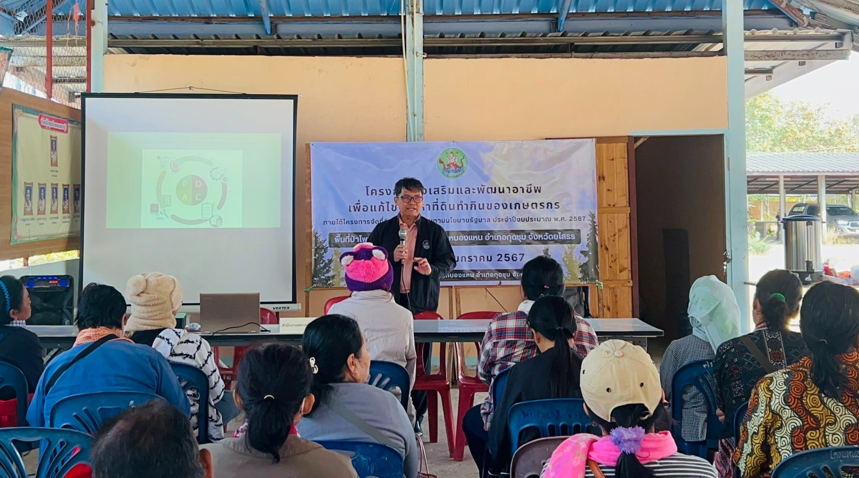 วันที่ 24-25 มกราคม 2567 นายปรีชา ลาภารัตน์ สหกรณ์จังหวัดยโสธร มอบหมายนายตรีปพัฒน์ พรศุภสิทธิ์ ผู้อำนวยการกลุ่มจัดตั้งและส่งเสริมสหกรณ์ พร้อมด้วยบุคลากรสำนักงานสหกรณ์จังหวัดยโสธร จัดอบรบโครงการส่งเสริมและพัฒนาอาชีพเพื่อแก้ไขปัญหาที่ดินทำกินของเกษตรกร หลักสูตร “การส่งเสริมและพัฒนาอาชีการเกษตรที่เหมาะสมกับพื้นที่” ให้ความรู้เรื่อง การบริหารจัดการ การดำเนินธุรกิจของกลุ่มฯ การตลาด และช่องทาง การจัดจำหน่าย การปรับปรุงบำรุงดิน และคลุมดิน การส่งเสริมและพัฒนาอาชีพ การเลี้ยงไก่,ปลา,จิ้งหรีด รวมทั้งการทำบัญชีครัวเรือน บัญชีรับ จ่าย ณ ศาลากลางบ้านหนองแหน ตำบลหนองแหน อำเภอกุดชุม จังหวัดยโสธร