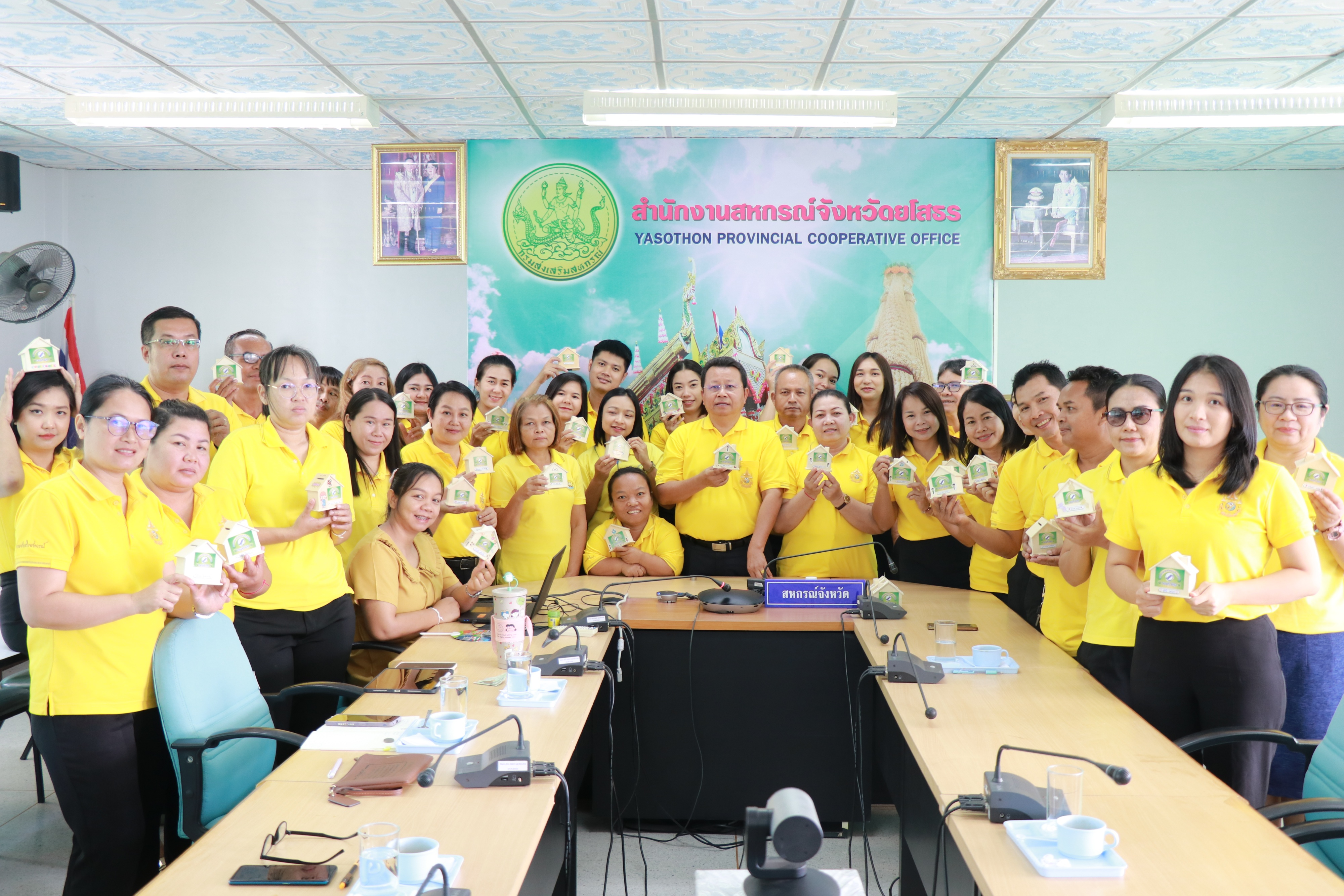 วันที่ 16 พฤษภาคม 2567 นายปรีชา ลาภารัตน์ สหกรณ์จังหวัดยโสธร พร้อมด้วยบุคลากรสำนักงานสหกรณ์จังหวัดยโสธร นำกระปุกออมสินมาร่วมกิจกรรมเพื่อติดสติกเกอร์ตกแต่ง ร่วมกิจกรรม (kick Off) "สหกรณ์ออมดี มีสุข" ผ่านระบบ Zoom Meeting โดยมีนายนายวิศิษฐ์ ศรีสุวรรณ์ อธิบดีกรมส่งเสริมสหกรณ์ เป็นประธานในการเปิดกิจกรรม (kick Off) "สหกรณ์ออมดี มีสุข" ณ กรมส่งเสริมสหกรณ์ โดยถ่ายทอดสัญญาณไปยังสำนักงานสหกรณ์จังหวัดทั่วประเทศ