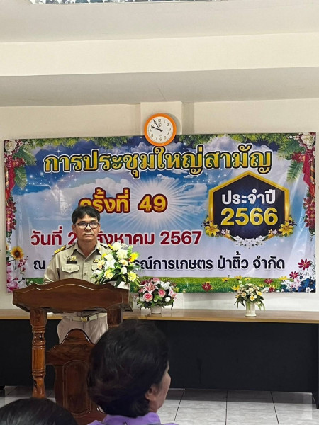 ประชุมใหญ่สามัญประจำปี สหกรณ์การเกษตรป่าติ้ว จำกัด สำหรับปีบัญชีสิ้นสุดวันที่ 31 มีนาคม 2567